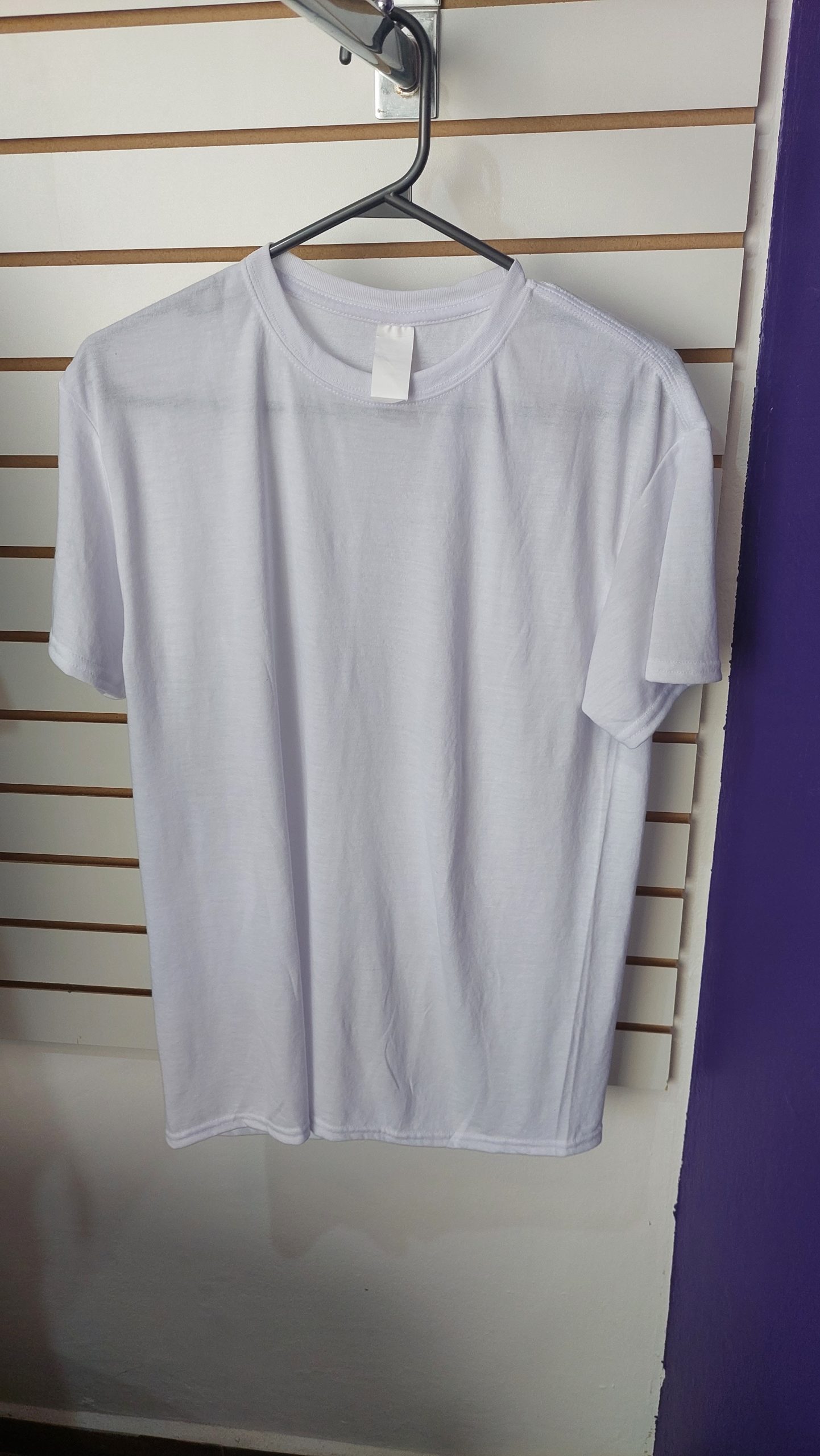 Camisa de poliéster Polyspum en talla XL, ideal para sublimación. Ofrece una excelente base para transferencias de alta calidad.
