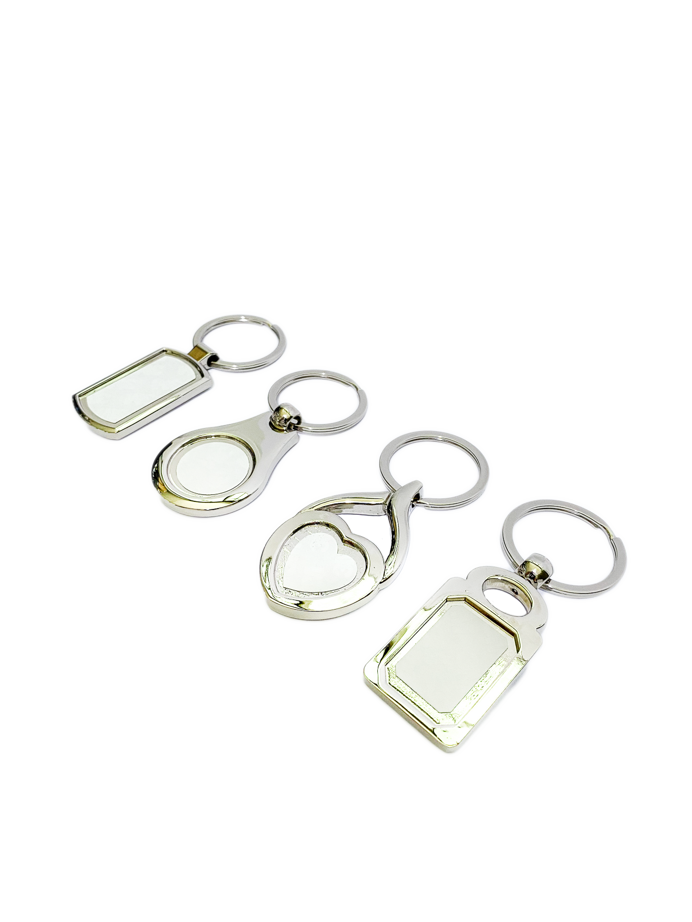 Llavero de metal en forma cuadrada, ideal para personalizar mediante grabado o sublimación.